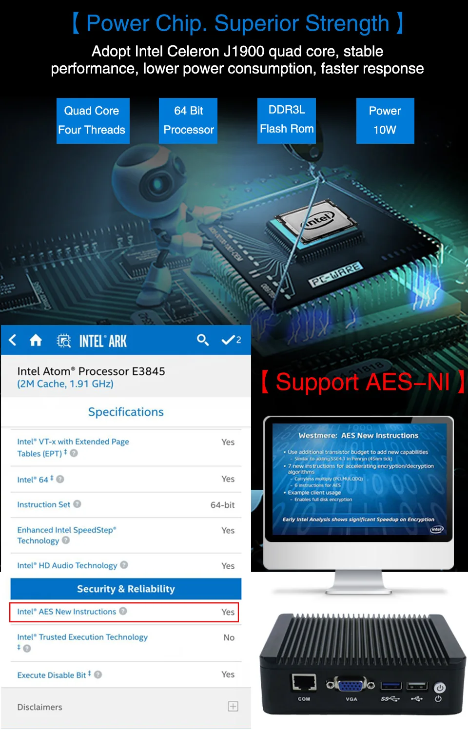 1. This computer only works with RAM atlowervoltage 1.35Vinstead of normal 1.5V RAM.5.About customs fees, we arenot responsiblefor buyer's customstaxes or VAT.We willdeclare true valueby default.If you need us to offer an invoice, pleaseleave a message.Pls do not open a dispute or give us a bad feedback due to the extra importing fees, otherwise pls do not buy it, thanks.1.Intel AtomE3845Quad Core 1.9GHz.