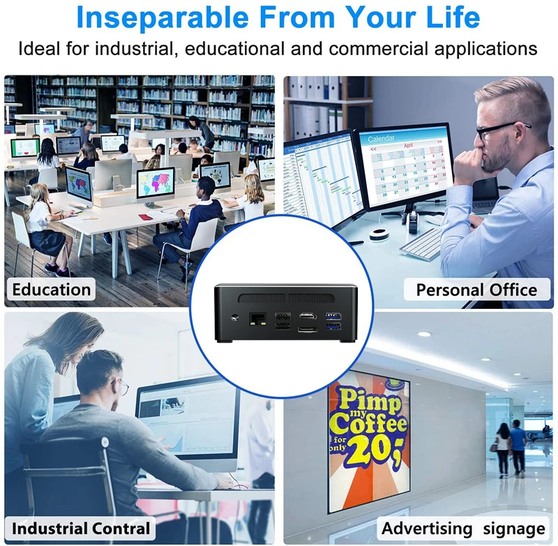 - 【Dual HDMI 4K Display】 It supports 4K HD videos with dual HDMI outputs, ideal for visually home entertainment, HTPC, perfect for home office, light games, digital security and surveillance, digital signage, media center, conference room etc.