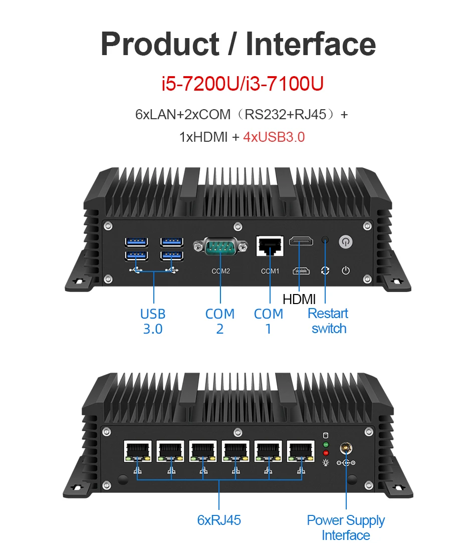 | Fanless Mini Pc Intel Core i5 8265U Celeron 6 LAN 211at Gigabit Ethernet 2*Usb 3.0 HDMI RS232 Firewall Router PFsense Minipc |