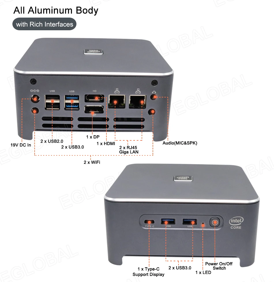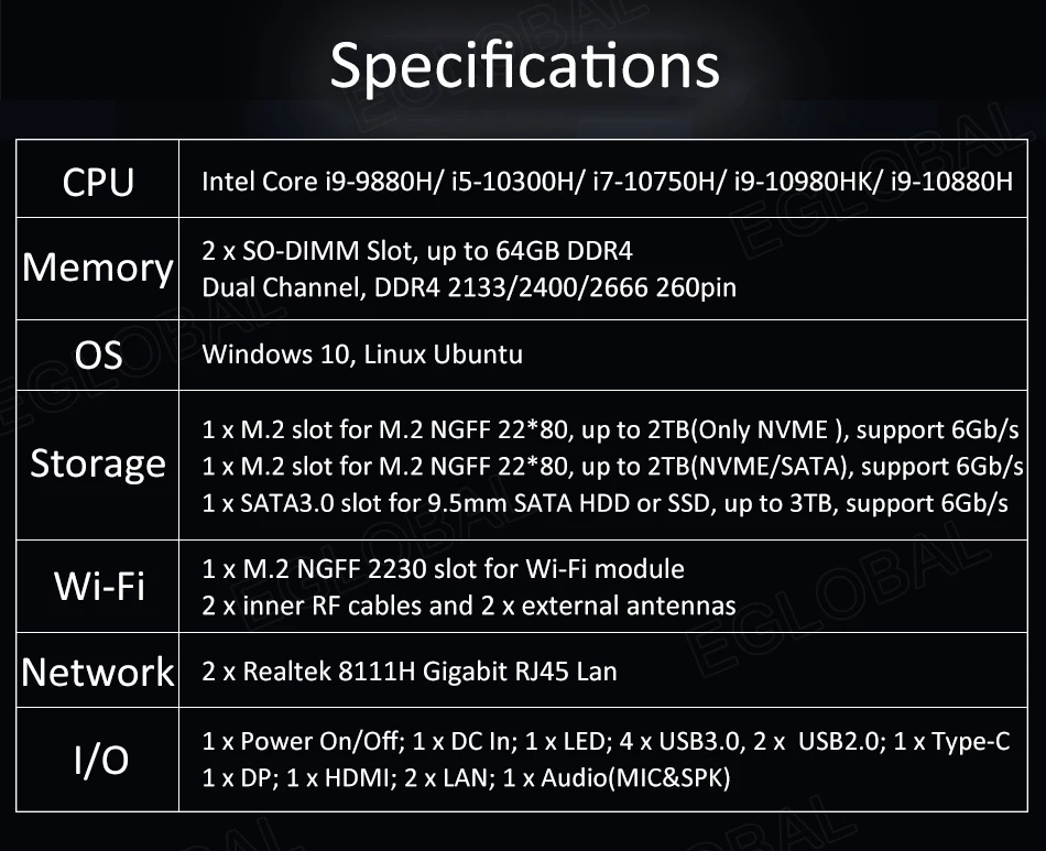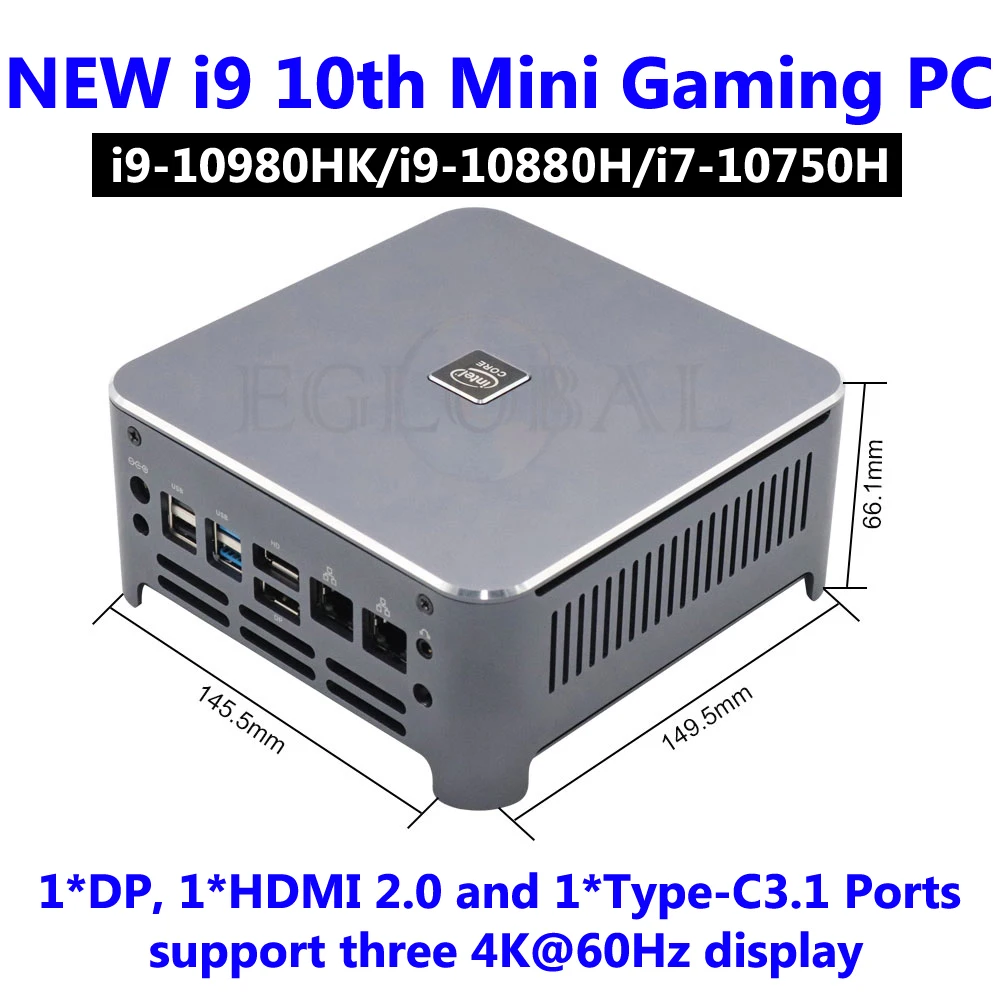 | EGLOBAL Mini PC Intel Core i9-10980HK i7-10750H Windows 10 Pro Key USB-C 4K Display Gaming Computer NGFF M.2 AX200 AC AX WIFI |