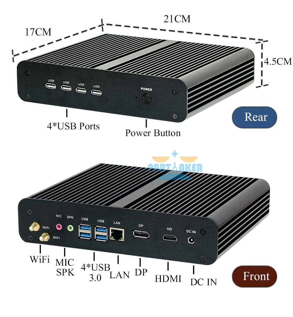 | Partaker B7 10Th Gen Fanless Mini PC Intel Core i7 10710U Gaming Computer M.2 NVMe+Msata+2.5''SATA HTPC Nettop HDMI DP PC WiFi |