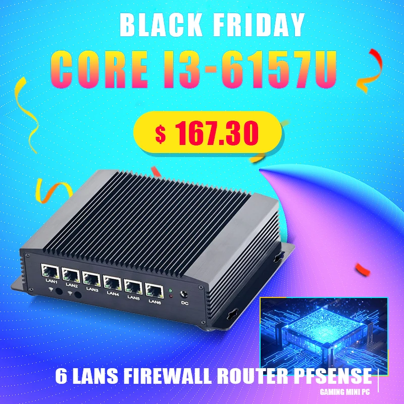 The best product you are looking for is "6*Intel Lan Fanless Mini Pc Intel Core i5 8265U i3 6157U Firewall Router Pfsense Server 2RS232 HDMI 4G/3G AES-NI Support WOL Pc". This product is available and ready to be purchased. Get attractive discounts every time you shop in our store (aliexpress.com). Aliexpress also provides a coupon of $ 3 for the first buyer to shop there. don't forget to bookmark our store page so you can go shopping again anytime..