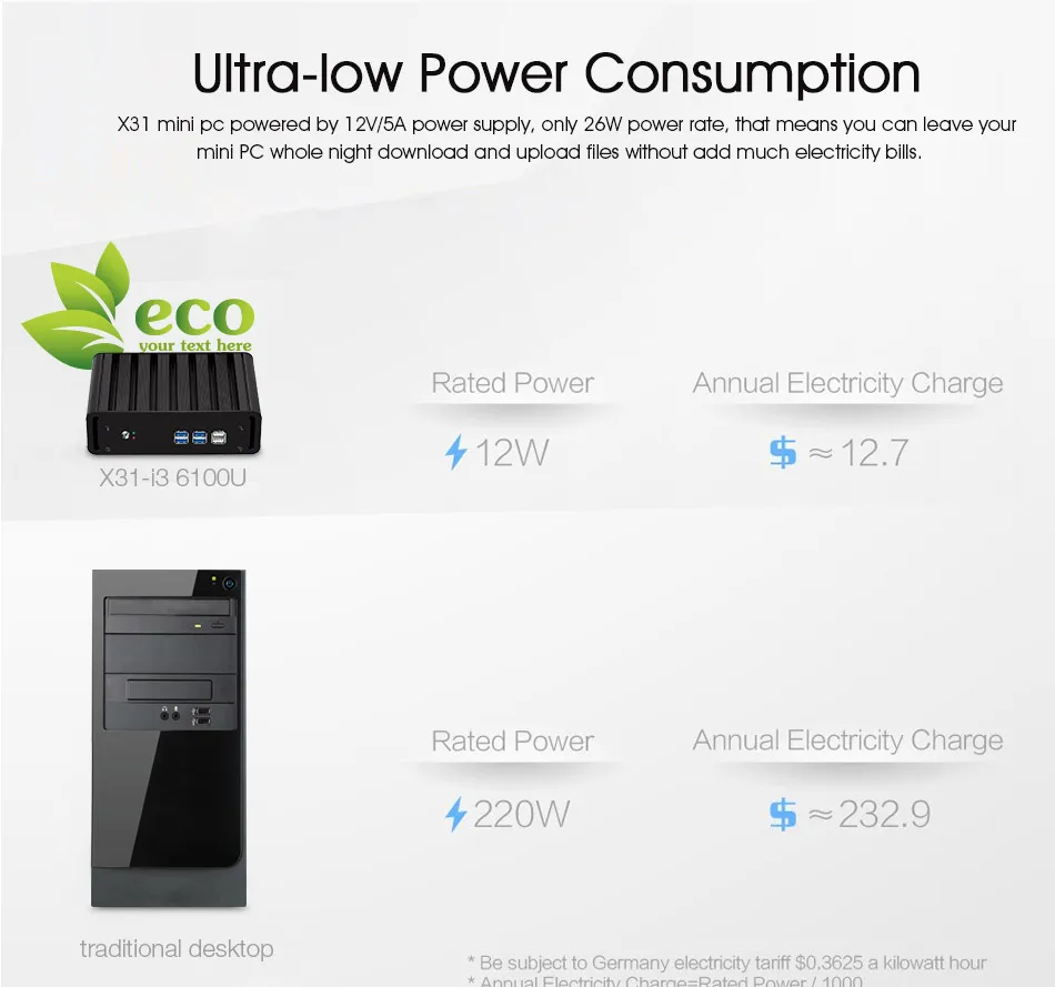 Mini PC Intel Core i3 i5 i7 Processors, RAM DDR3L, Support Dual Storage 1x Mini SATA SSD and 1x SATA 2.5inch HDD/SSD, HDMI VGA Video Output, 2x USB 3.0, 4x USB 2.0, 300M Wi-Fi, Gigabit Ethernet, Home Entertainment and Office Computers