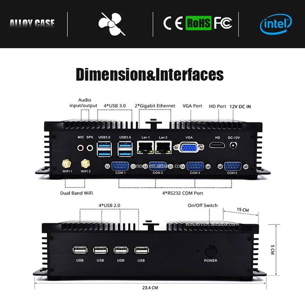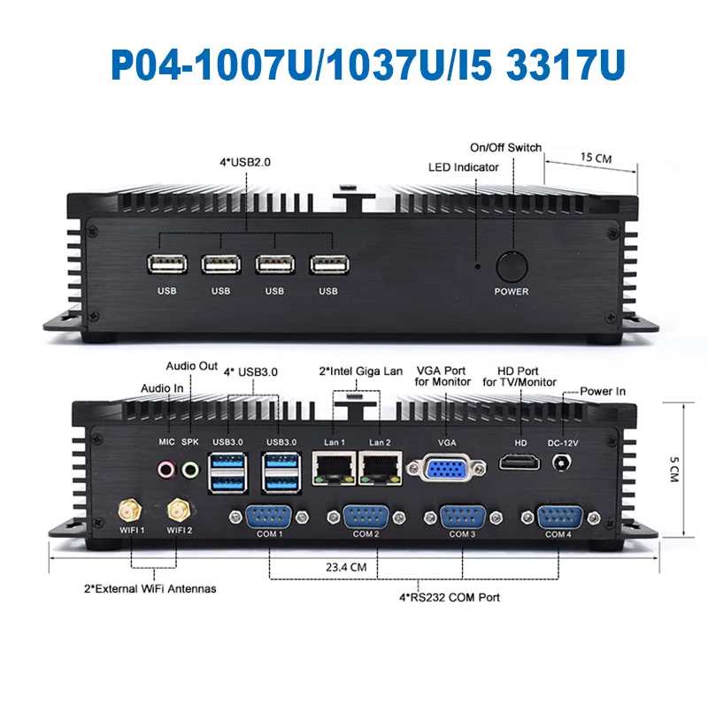 Intel Core i3 7100U Industrial Mini PC Celeron 1037U Windows XP Win7 Computer i5 3317U 4K HD RS232 X86 Portable PC i5 7200U >>intel i3 4005U/7100U/ I5 5250U/7200U/1007U-1Lan Mic;Speaker;4 USB 3.0 port;3 USB 2.0 port;1 RJ45 Gigabit LAN Port; 2 RS232 COM; 1 VGA;1 HDMI;1 DC12V In