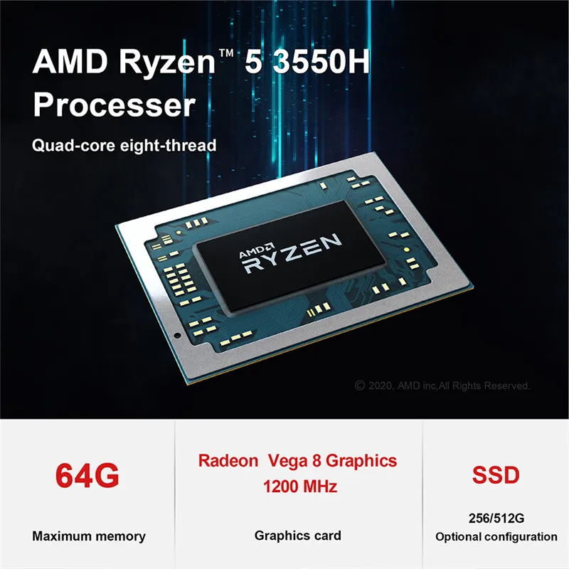 CPU: AMD Ryzen 5 3550H 2.1-3.7GHz 4C/8T L1 384KB L2 2MB L3 4MB