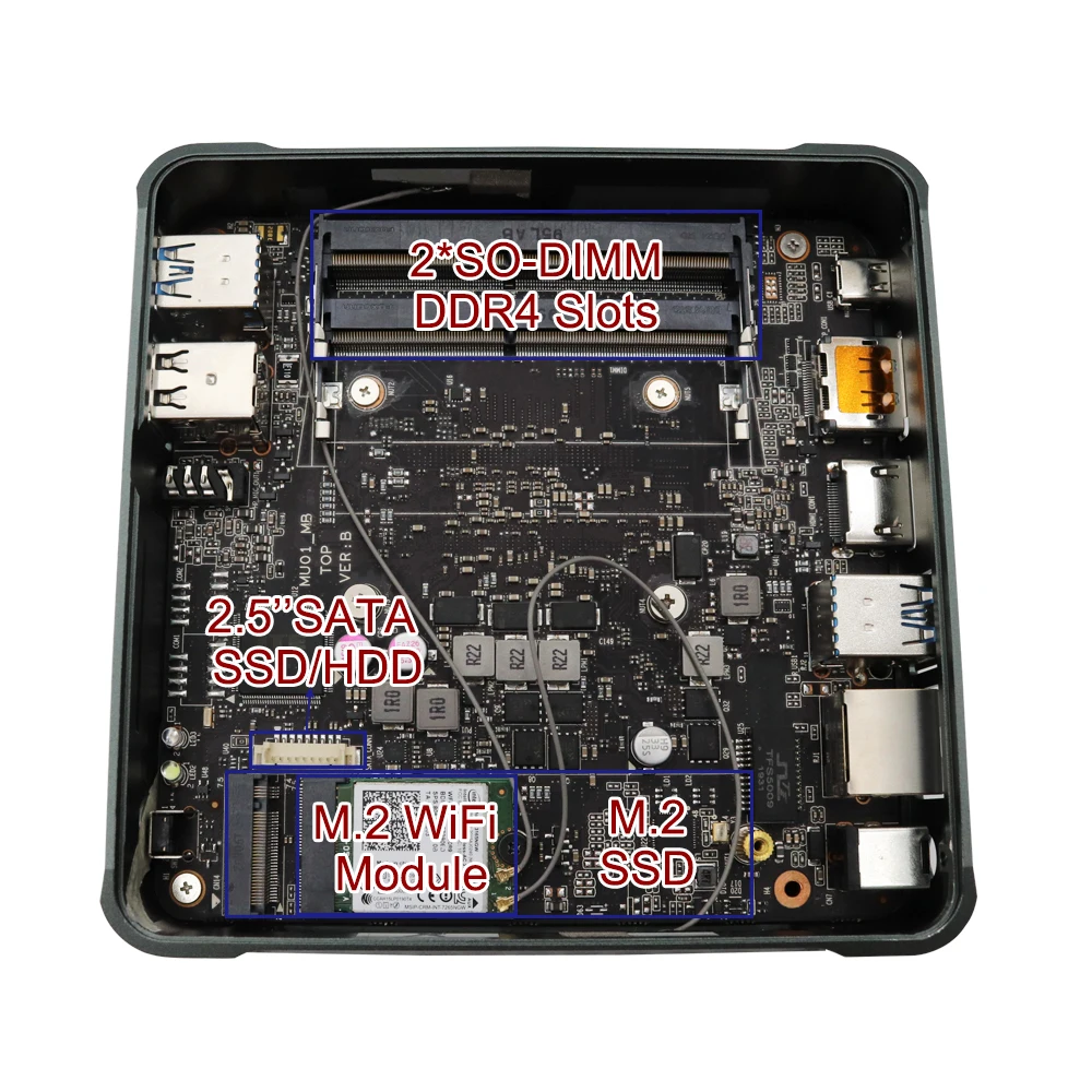 3. Support 1*M.2 PCIE*4/SATA3.0 SSD(22x80)+1*2.5'' 7mm SATA HDD/SSD