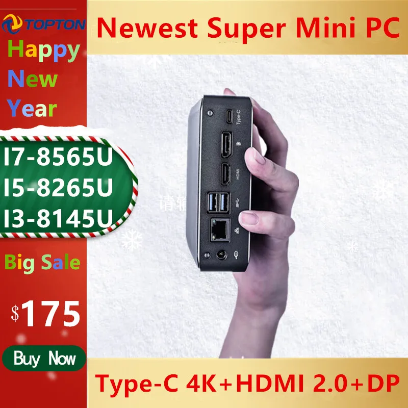 | Super Mini PC i7-8565U I5-8265U I3-8145U 2*DDR4 RAM M.2 NVMe Pocket Nuc portatil PC Computer Windows 10 Pro Type-c 4K HDMI2.0 DP |