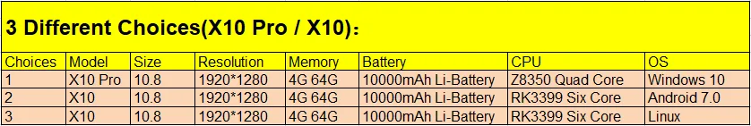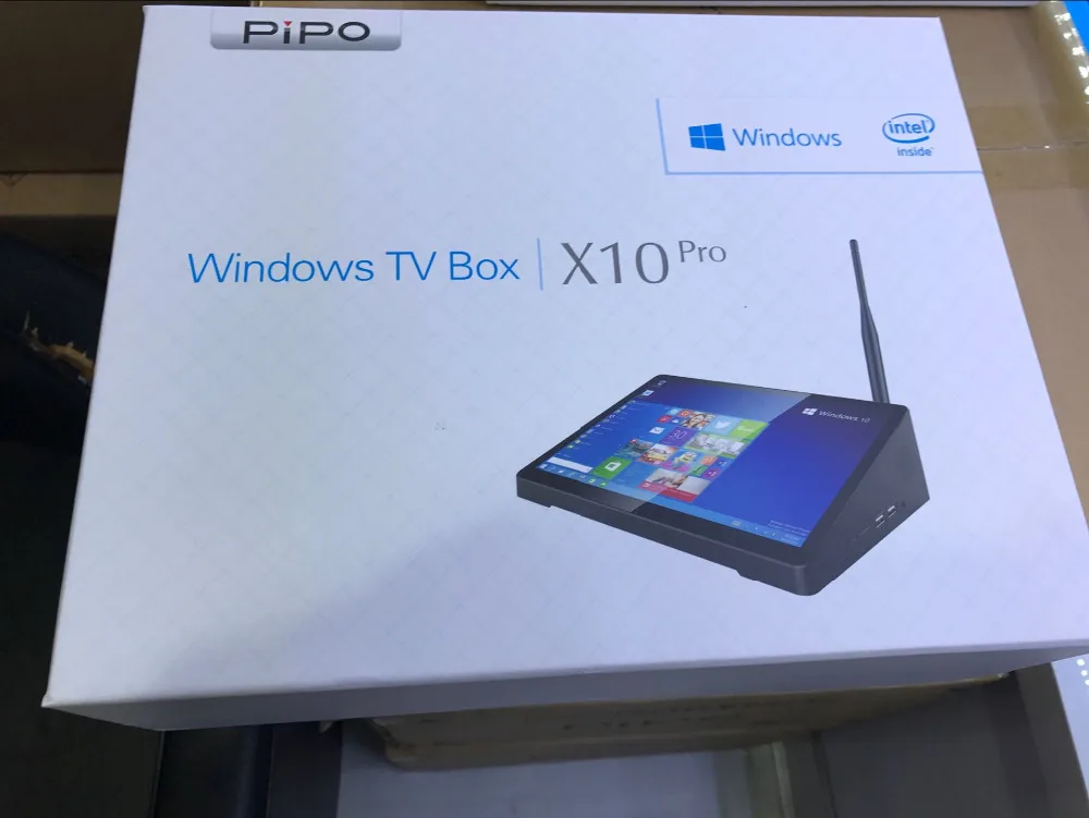 Specifications: 1. PiPo X10 Pro / X10 10.8" Media Box / Smart TV Box / Mini Box. 2. CPU: Intel Cherry trail Z8350 Quad Core, maximum up to 1.94GHz, stable and reliable. ( RK3399 for X10 ) 3. Features with 10.8 inch LCD screen display. 4. Resolution: 1920 x 1280 pixels. 5. OS: Windows 10 / Android 7.0 / Linux 6. Memory: 4G RAM 64G ROM 7. Bluetooth connectivity: Easy pairing with most Bluetooth-enabled devices (computer, mobile phone, keyboard, and others). 8. Bluetooth / WIFI / Lan port RJ45 / USB port 4 / HDMI