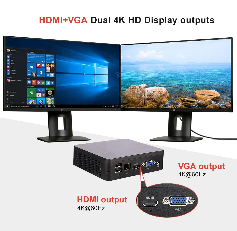 Newest SZMZ MINI PC Intel X5 Z8350 1.92GHz 4GB+64GB Wnidows 10 licensed support 2.5 inch HDD, VGA&HDMI dual output, WIN10 TV BOX