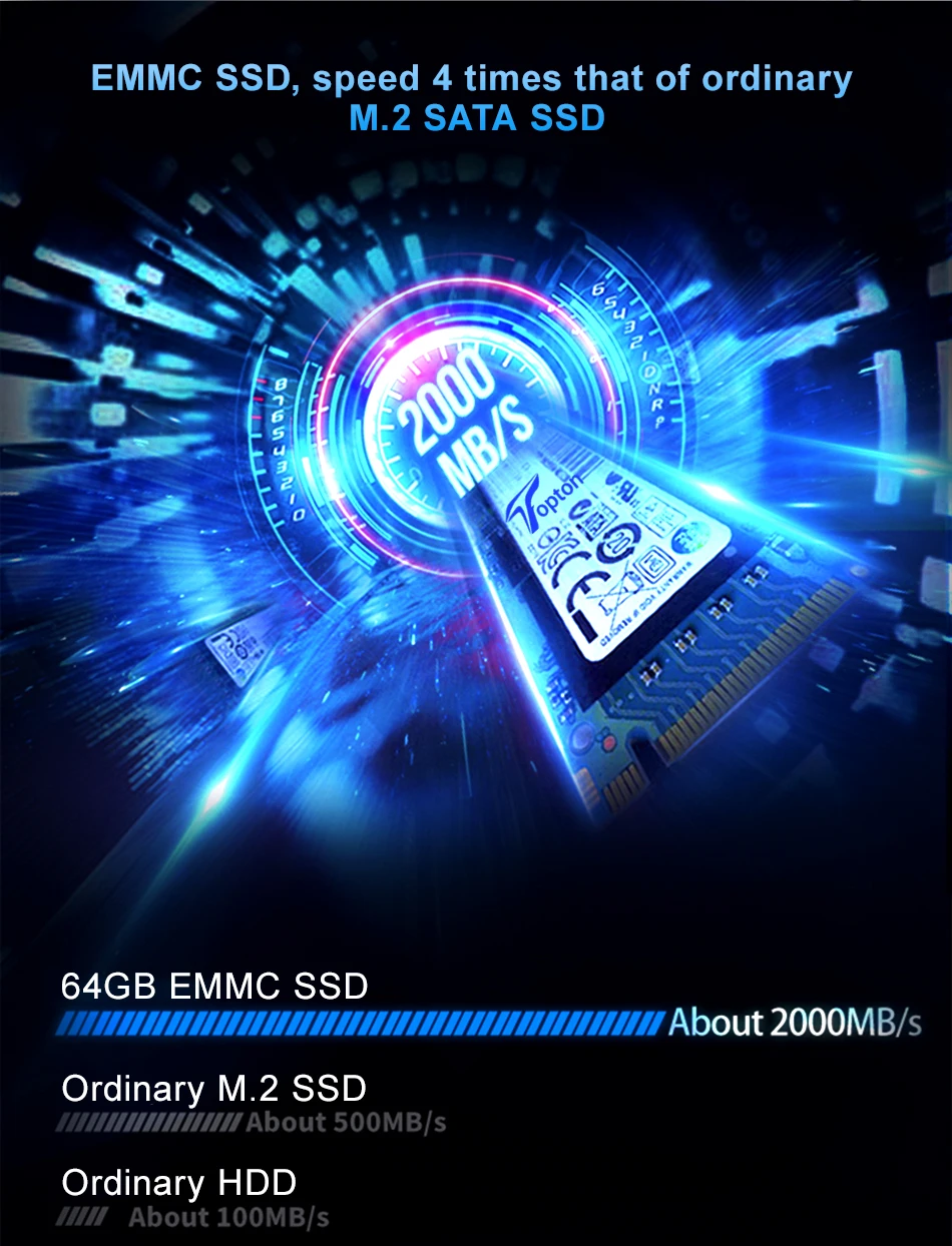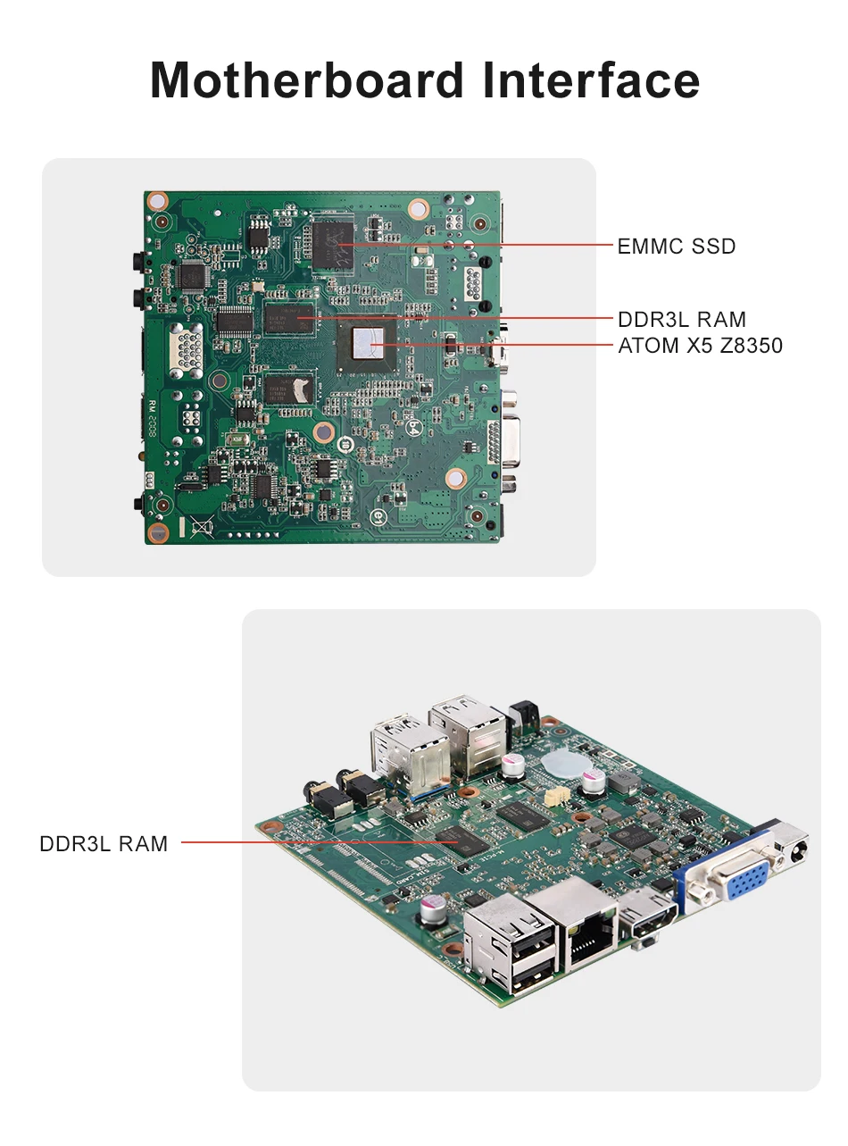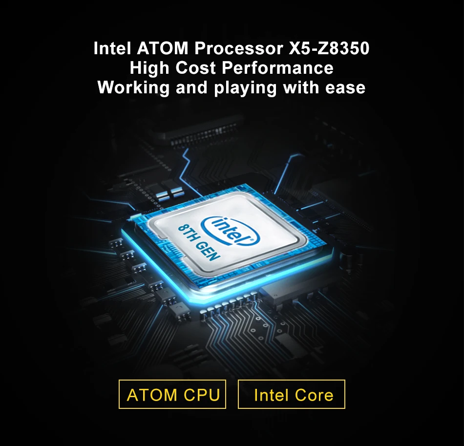 * CPU: Intel Z8350, 14nm 4cores, up to 1.92GHz, 64bit