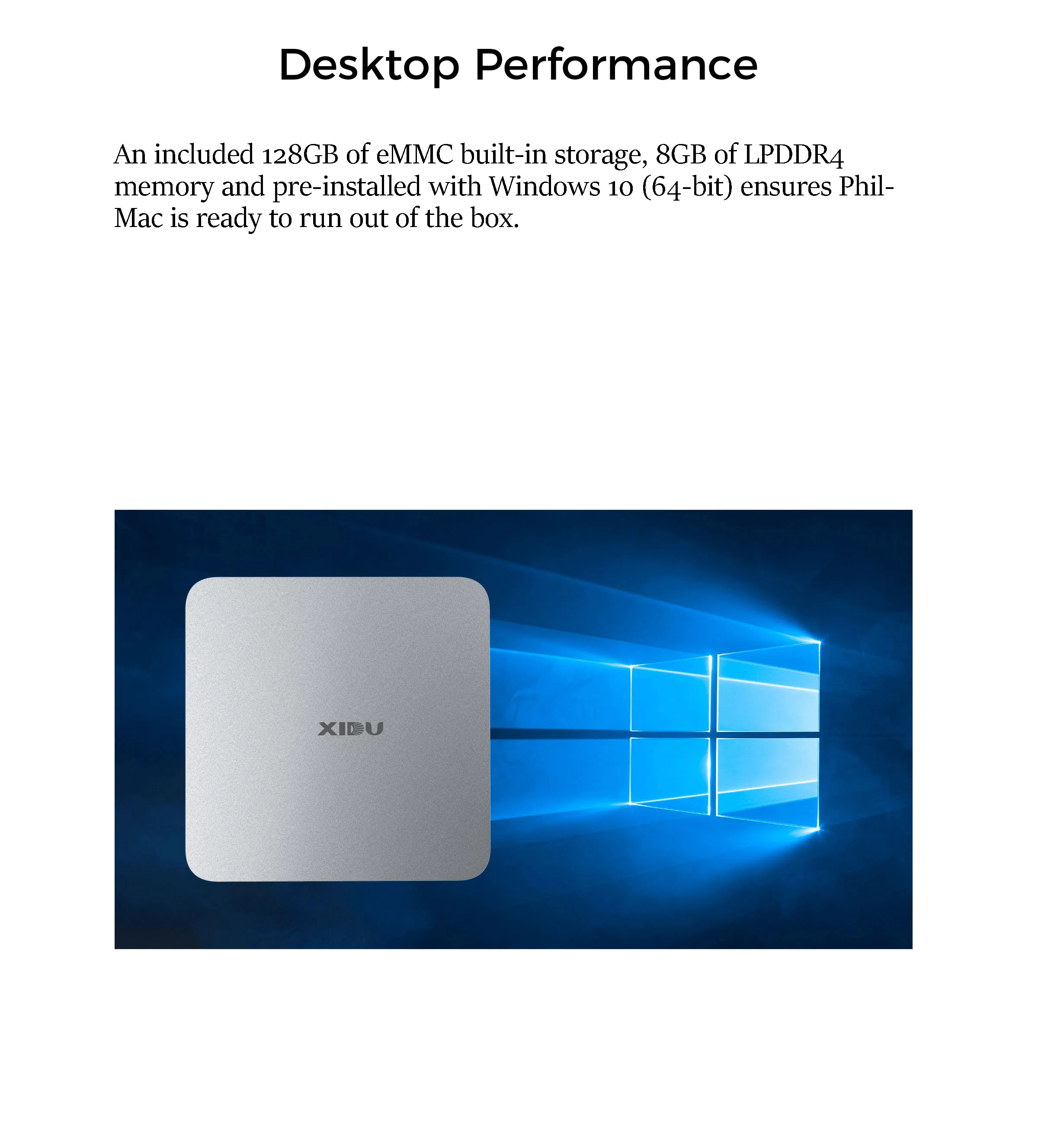 Box Contains:1x XIDU PhilMac Mini Pc1 x CE certified mini pc charger1 x English user guide---------------------------------------------------------------------------------Overseas warehouseWe have RU/UK/US warehouse ,Estimated shipping time 3-8 business days .RU warehouse :Russia, Belarus, AzerbaijanUS warehouse :United StatesUK/FR warehouse:Austria\Spain\Greece\Netherlands\Belgium\Finland\Ireland\Portugal\Germany\France\Italy\Sweden\Denmark\United Kingdom \Luxembourg\Bulgaria\Estonia\Lithuania\Romania\Cyprus\Hungary\Republic of Malta\Slovakia\Czech Republic \Latvia\Poland\Slovenia (Tips :UK warehouse only have UK plug )Shipping1.All items will be dispatched within the promised date. We will inform you via the Email if there is any delay.2.Please double check your address at aliexpress, phone number is important when there is something urgentTaxThe selling price doesn’t include tax.If you`re worried about the tax,please get to know the import policy of your country and contact us.When your package is held by the custom,We will provide an invoice to help you .(Tips: RU/US/UK warehouse,there are no vat no tax.) WarrantyNo risk gurantee——XIDU provides 12-Month warranty, 30-day money back guarantee and lifetime technical support. But we are not responsible for any artificial damage or system reinstalled problem.FeedbackIf you are satisfied with our product and service,Please leave us positive feedback & a 5 star review !If you are unhappy with our service or any other problem ,please contact us before leaving feedback and we will resolve the issue immediately,thank you !StickersWe will send Keyboard stickers as follow if you leave us a message:Russian / French/Spanish/Arabic/Korea/Italian/Portuguese (Only Ships from China )