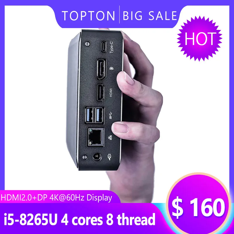 Topton New Mini PC Windows 10 Intel i7 10510U i5 10210U 2*DDR4 M.2 Nuc Portable Computer System Unit Type-C 4K 60Hz HDMI2.0 DP