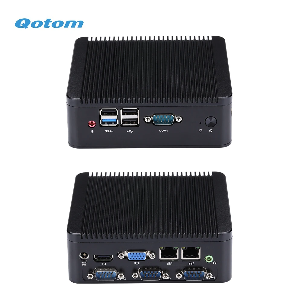 Qotom Fanless CPU J1900 Mini PC Quad Core 2.42 GHz Running 24/7 X86 Mini Industrial Desktop PC