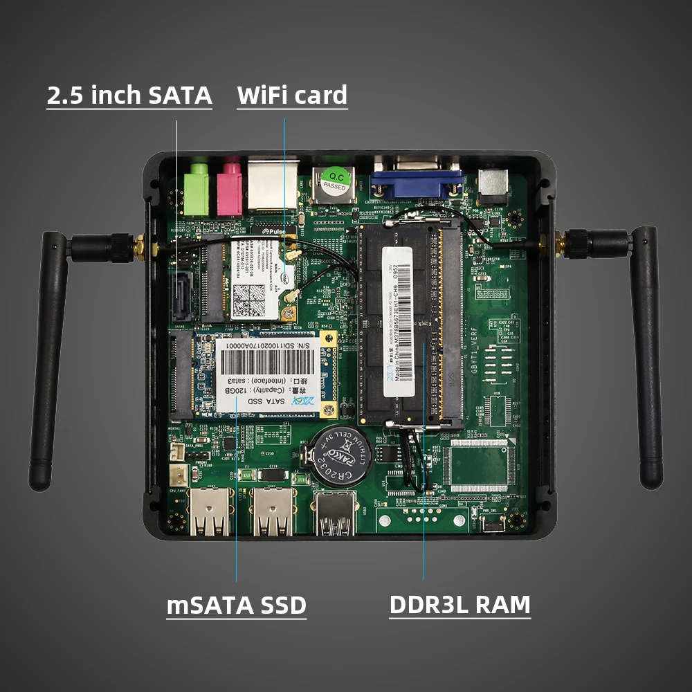 | XCY Fanless Mini PC Intel Celeron J1900 Quad-Cores Windows 10 Linux DDR3L RAM mSATA SSD VGA HDMI WiFi Gigabit LAN 5xUSB HTPC |