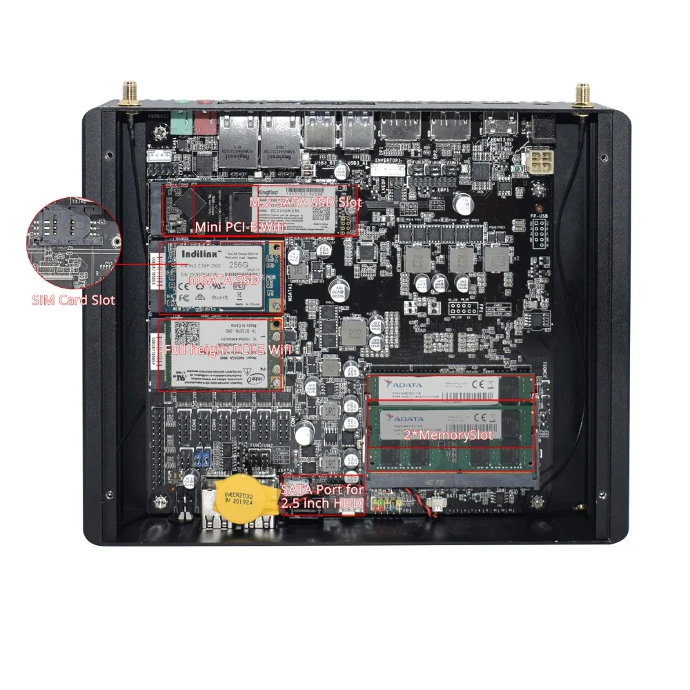 Barebone system no ram no storage no wifi, please use DDR4-2133/2440 260pin laptop original brand SODIMM Ram, Msata SSD and M.2 NVMe/NGFF/PCIE SSD, don't support DDR3/L Ram installation.