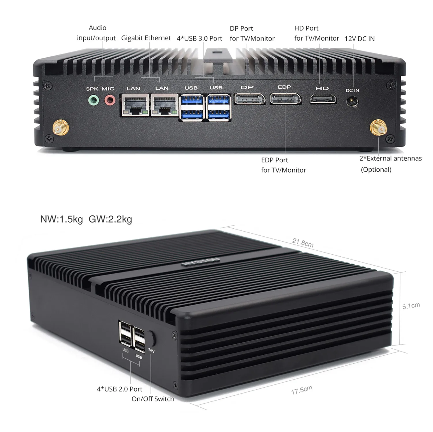 | Fanless pc mini industrial Computer i7 8550U Fanless PC Server i5 8250U linux HDMI 2.0 DP 3 Years Warranty Desktop MINI computer |